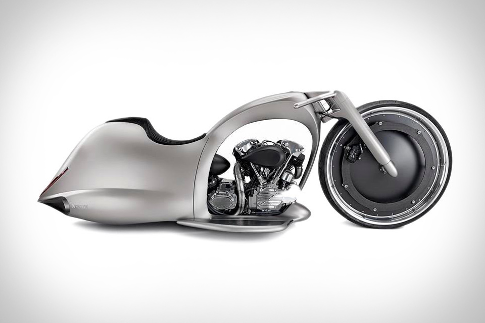 The Full Moon Motorcycle is the result of a brilliant collaboration between the leaders in exhaust systems Akrapovič with Slovenian custom bike builder Dreamachine Motorcycles. In reality, this bike's form and design object to a traditional categorization and spell the future in time and technology. The most eye-catching feature of the Full Moon is the huge aluminum and carbon 30-inch front wheel that looks like a full moon and thus creates a graphical AIR impact.