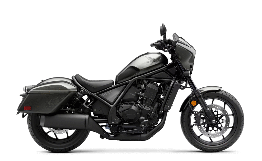 The standout feature of this model is its dual-clutch transmission (DCT), which eliminates the need for a clutch lever or shifter, simplifying the riding experience. Equipped with ride-by-wire, multiple ride modes, traction control, and cruise control, the Rebel 1100T is a high-tech, low-slung option priced at about $11,500.