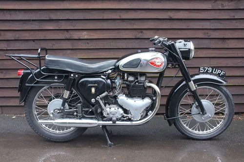 Introducing the 1954 BSA Golden Flash, a true classic that embodies the spirit of mid-century British motorcycling. Positioned in the allround category, the Golden Flash is not just another motorcycle; it’s a symbol of the golden era of biking, where style met performance in a harmonious blend. With its sleek lines, polished chrome accents, and robust engineering, this motorcycle captures the hearts of enthusiasts and collectors alike. Whether you’re cruising through the countryside or navigating city streets, the Golden Flash is designed to deliver a ride that’s both exhilarating and comfortable, making it a versatile choice for riders of all preferences. At the heart of the Golden Flash lies a powerful 646cc twin-cylinder, four-stroke engine, which produces an impressive 35 horsepower at 4500 RPM. This engine not only delivers a lively performance but also provides a smooth and responsive ride, allowing you to feel every twist and turn of the road. The bore and stroke measurements of 70.0 mm by 84.0 mm create a balanced power delivery, complemented by a traditional carburettor fuel system that adds a nostalgic touch to the riding experience. The air-cooled design ensures reliability and simplicity, while the chain final drive contributes to the straightforward maintenance that classic motorcycle enthusiasts appreciate. With a power-to-weight ratio of 0.1842 HP/kg, the Golden Flash strikes a commendable balance between power and agility, making it a joy to ride on both long journeys and short commutes. The BSA Golden Flash shines not only in performance but also in its thoughtful features and design elements that reflect the era’s technological advancements. The single cradle frame provides a robust foundation, ensuring stability and confidence while navigating various terrains. The hydraulic telescopic forks at the front and twin shock absorbers at the rear deliver a smooth, controlled ride, absorbing bumps along the way. With drum brakes at both the front and rear, riders can enjoy reliable stopping power that aligns well with the bike’s vintage styling. The 19-liter fuel tank allows for extended rides without frequent refueling stops, and with a weight of 190 kg, the Golden Flash feels nimble and responsive, enhancing the rider's confidence and enjoyment. **