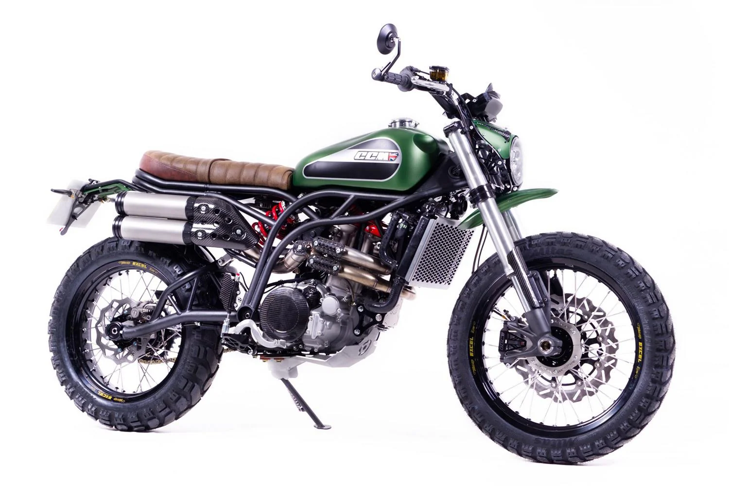 Introducing the 2021 CCM Maverick, a dynamic addition to the naked bike category that stands out with its striking design and performance-focused engineering. With its robust build quality and a distinctive aesthetic, the Maverick caters to riders seeking a blend of style and substance. This motorcycle embodies CCM's commitment to craftsmanship, featuring a hand-tig welded high-strength steel frame that not only enhances durability but also elevates the riding experience. Whether you're navigating city streets or carving through winding backroads, the Maverick promises to deliver excitement and confidence with every twist of the throttle. At the heart of the Maverick lies a powerful 600cc engine, producing an impressive 55 horsepower and 50 Nm of torque at 5,500 RPM. This liquid-cooled, fuel-injected powerhouse, equipped with a Mikuni D45 system, is engineered for spirited performance and exceptional fuel efficiency, boasting a consumption rate of just 4.20 liters per 100 km. The 6-speed gearbox allows for smooth gear transitions, making it an agile performer on both the highway and in more urban settings. With a power-to-weight ratio of 0.3793 HP/kg, riders will appreciate the Maverick's nimbleness, offering a thrilling yet controlled ride that inspires confidence at any speed. The 2021 Maverick is packed with features designed to enhance both comfort and performance. The adjustable telescopic front forks and single adjustable rear shock provide 120 mm of travel, ensuring a smooth ride over various terrains. Stopping power is delivered through a single disc brake setup in both the front (320 mm) and rear (240 mm), offering reliable braking performance when it counts. With a comfortable seat height of 830 mm and a fuel capacity of 14 liters, the Maverick is designed for both short jaunts and longer adventures. Available in striking green and black color options, this bike is as visually appealing as it is functional, backed by a reassuring 2-year warranty. **
