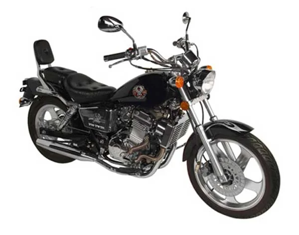 Introducing the 2008 CSR Custom 250 Twin, a captivating blend of style and functionality that caters to both novice riders and seasoned motorcycling enthusiasts. This custom-cruiser motorcycle, hailing from Spain, is designed to turn heads while providing an accessible entry point into the world of two-wheeled freedom. With its sleek lines and classic cruiser aesthetics, the Custom 250 Twin stands out in the crowded cruiser category, appealing to riders who desire a unique and personalized experience on the open road. At the heart of the CSR Custom 250 Twin is a spirited 249cc twin-cylinder, four-stroke engine, expertly engineered to deliver an exhilarating ride. This liquid-cooled powerplant, paired with a carburettor fuel system, offers smooth acceleration and responsive handling, making it ideal for city commuting or leisurely weekend rides. The chain final drive ensures efficient power transfer, allowing riders to effortlessly navigate through traffic or cruise along winding roads. The motorcycle's lightweight design, combined with a seat height of just 560 mm (22 inches), allows riders of various sizes to maintain excellent control and balance, enhancing overall confidence on the bike. The CSR Custom 250 Twin is equipped with a range of features that elevate its riding experience. The electric starter ensures a hassle-free ignition, while the single-disc front brake provides effective stopping power, complemented by the reliable drum brake at the rear. With a fuel capacity of 15 litres (3.96 gallons), riders can enjoy extended journeys without frequent refueling stops. The striking black color option adds an air of sophistication, making the Custom 250 Twin a true eye-catcher on the road. In summary, the 2008 CSR Custom 250 Twin is an inviting motorcycle that harmonizes style, comfort, and practicality, making it an excellent choice for those seeking a reliable companion on their adventures. Whether you're a new rider looking to build confidence or an experienced enthusiast wanting a charming cruiser for city escapades, the Custom 250 Twin delivers an engaging experience that is hard to resist.