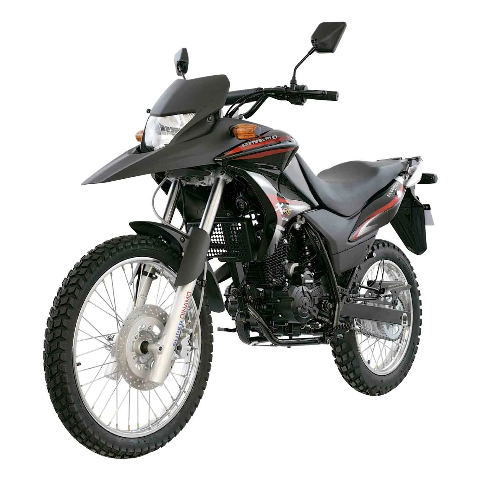 Introducing the 2020 Dinamo Scorpion 250, a spirited contender in the enduro-offroad category that marries rugged capability with spirited performance. Designed for both novice riders and seasoned adventurers, this versatile motorcycle is perfect for those looking to tackle rough terrains and urban landscapes alike. With its robust build and aggressive styling, the Scorpion 250 stands out in the crowded market of entry-level dual-sport bikes, making it an appealing choice for riders eager to explore the untamed outdoors. At the heart of the Scorpion 250 is a punchy 249cc engine, delivering a commendable 16 horsepower at 7500 RPM. This powerplant, combined with its air-cooled system and CDI ignition, ensures that riders experience a smooth and reliable ride, whether navigating rocky trails or cruising down city streets. With a top speed of 90 km/h (55.9 mph), the Scorpion 250 offers enough zest to keep the adrenaline flowing while maintaining a user-friendly demeanor that new riders will appreciate. The bike’s lightweight frame and responsive handling make it a joy to maneuver, allowing for both precision and playfulness on varied terrains. Equipped with a host of practical features, the Scorpion 250 is designed for the modern adventurer. The inverted telescopic front suspension and shock rear suspension work in harmony to absorb bumps and provide a comfortable ride, whether you're traversing dirt trails or city potholes. The single disc front brake and expanding drum brake in the rear ensure confident stopping power, giving riders the reassurance they need when the trail gets tricky. Additionally, the bike boasts both electric and kick starters, offering versatility in starting up, especially in remote areas where a quick start is vital. With a fuel capacity of 12 liters (3.17 US gallons), you can venture farther without the constant worry of refueling. Overall, the 2020 Dinamo Scorpion 250 is a compelling option for those eager to explore the great outdoors without sacrificing the thrill of the ride. Whether you're a beginner or a seasoned rider, this motorcycle offers an exciting blend of performance, comfort, and versatility that’s hard to beat.