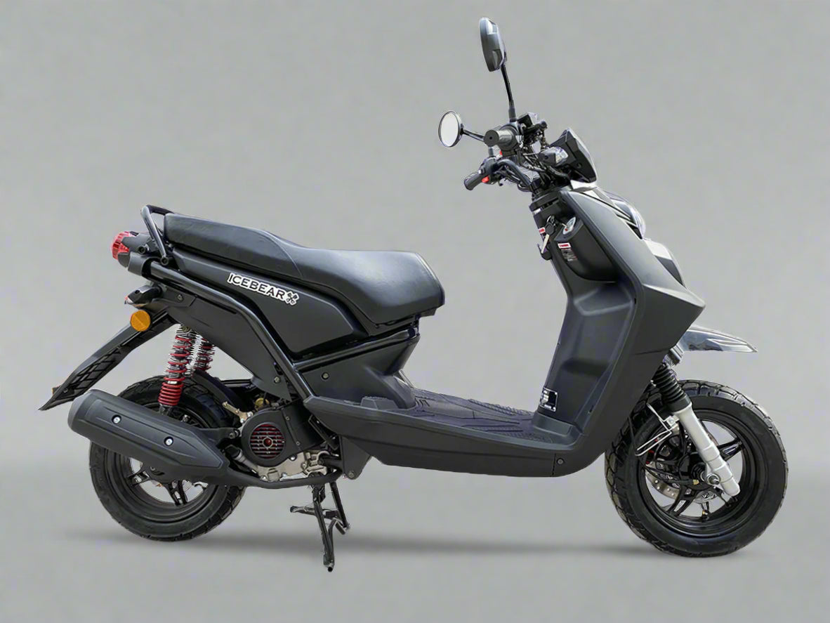 Introducing the 2018 Ice Bear Vision 50, a nimble and stylish scooter that effortlessly blends practicality with an eye-catching design. This compact ride is perfect for urban commuting, offering an efficient and easy-to-handle experience for both novice and seasoned motorcyclists. With its sleek lines and vibrant color options—including white, red, gray, and black—the Vision 50 stands out in a crowded market, catering to those who seek a blend of functionality and flair without compromising on performance. At the heart of the Vision 50 is a robust 49cc single-cylinder, four-stroke engine that delivers a peppy 3.35 horsepower at 7000 RPM. This little powerhouse generates a torque of 3.50 Nm at 6750 RPM, ensuring a lively ride through city streets and backroads alike. The advanced PGM-FI electronic fuel injection system ensures optimal fuel efficiency, boasting an impressive consumption rate of just 1.60 liters per 100 kilometers—translating to an astonishing 147.01 miles per gallon. Combined with an automatic gearbox and a dry-type, multi-plate shoe clutch, the Vision 50 promises smooth and hassle-free rides, making it an ideal choice for those navigating through bustling traffic. The Ice Bear Vision 50 is not just about performance; it also comes packed with features that enhance the overall riding experience. The scooter's underbone steel tube frame provides a solid foundation, while telescopic forks with hydraulic damping at the front and a unit swingarm at the rear ensure a comfortable ride, absorbing bumps with ease. With a seat height of 785 mm, it offers accessibility for riders of various sizes, and its lightweight design (just 100 kg) makes it incredibly maneuverable. Safety is also a priority, with hydraulic disc brakes in the front and reliable drum brakes at the rear, giving riders confidence during stops. In summary, the 2018 Ice Bear Vision 50 is an excellent choice for those seeking a practical, stylish scooter for urban commuting. With its efficient engine, comfortable ride, and attractive features, it is designed to meet the needs of diverse riders while providing an enjoyable experience on the road.
