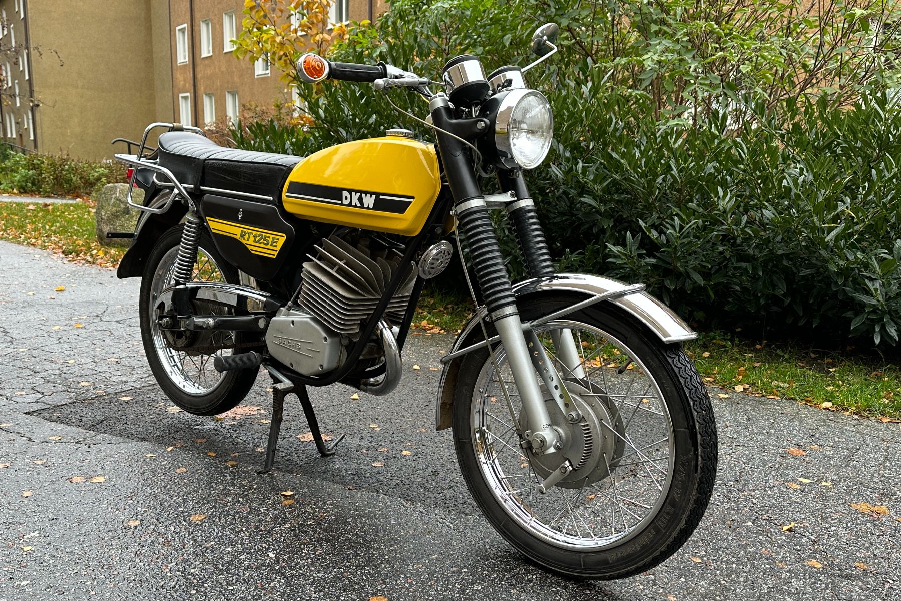 Introducing the 1973 DKW RT 125 E, a quintessential model that epitomizes the spirit of the early 70s motorcycle market. Positioned in the allround category, this bike offers a perfect blend of practicality and performance, making it an appealing choice for both novice riders and seasoned enthusiasts. Its lightweight design, paired with a robust construction, ensures that the RT 125 E is not only agile on urban streets but also capable of handling longer journeys with ease. As one of the notable offerings from DKW, this motorcycle stands out thanks to its unique engineering and historical significance, embodying the essence of a bygone era while still appealing to modern-day classic bike lovers. At the heart of the RT 125 E lies a spirited single-cylinder, two-stroke engine with a displacement of 124cc, delivering a respectable 17 horsepower at 7500 RPM. This engine configuration allows the motorcycle to reach a top speed of 120 km/h (74.6 mph), making it a fun ride for weekend outings or daily commutes. The 6-speed gearbox ensures smooth transitions between gears, allowing riders to harness the power efficiently, whether navigating through city traffic or enjoying open stretches of road. The air-cooled engine, with its impressive compression ratio of 11.8:1, provides not just reliability but also an exhilarating riding experience, where the roar of the engine becomes music to the ears of any motorcycle aficionado. The DKW RT 125 E is packed with features that enhance both its functionality and riding experience. Its compact design is complemented by a weight of just 108 kg (238.1 pounds), making it nimble and easy to handle. The expanding brake system, both front and rear, ensures reliable stopping power, which is crucial for safety as well as confidence on the road. With a fuel tank capacity of 10.5 liters (2.77 gallons), riders can enjoy extended rides without the constant need for refueling. This combination of lightweight chassis, responsive brakes, and a capable engine makes the RT 125 E a versatile choice for riders seeking adventure or simply a reliable mode of transport. **