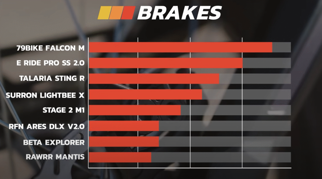 The braking system and suspension work appropriately while also ensuring safety and comfort. The 79 Bike Falcon M was the only player that had remarkable braking power, while the Eide Pro and Roar Mantis also had a competitive edge among the inferior ones. Not only that but the Stingr Light BX and Eide Pro SS were also impressive for their handling.