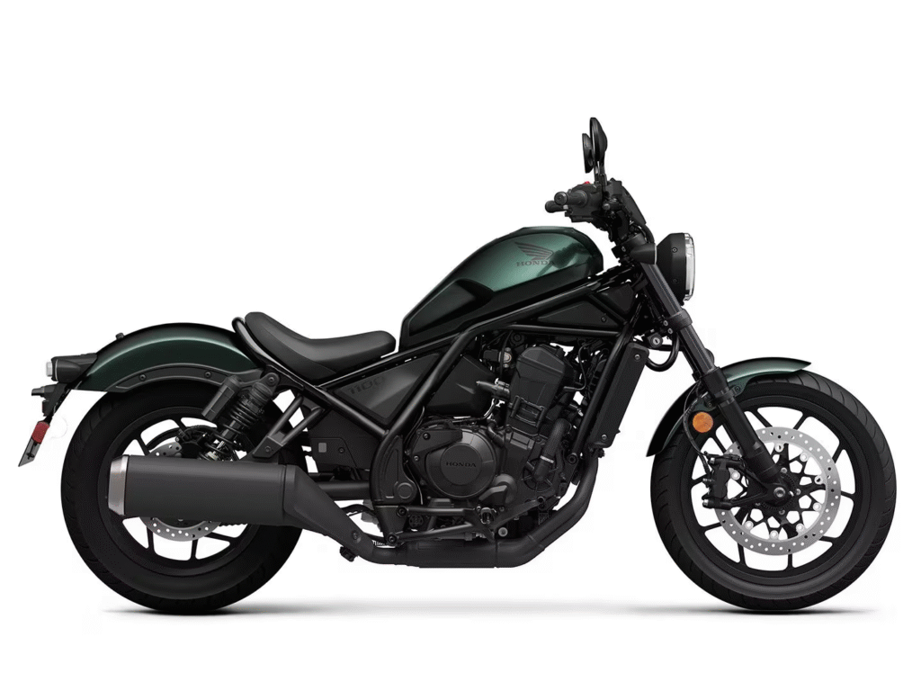 | Honda Rebel 1100 (2025) | 1,083cc Unicam parallel-twin | ~87 hp / ~70 ft-lb | 487 lb | 27.5 in | 6-speed or optional DCT | Full LCD dash, ABS (switchable on 1100T), ride modes (Tour/Eco/Standard), lean-sensitive TC, HSVCS (opt.), DCT walking mode + hill-hold | $9,599 (dest. $775) |